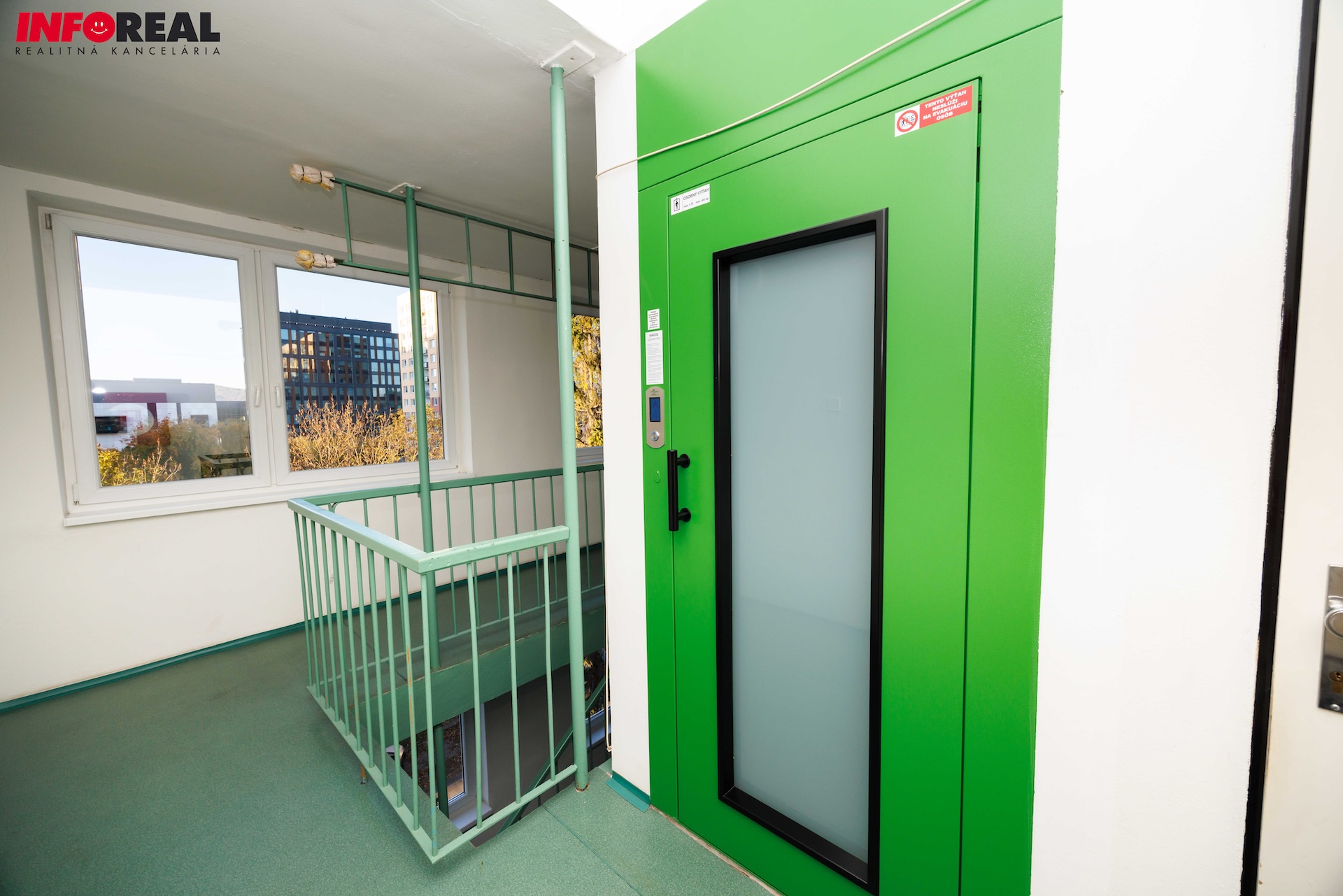 Byt (s výmerou 40 m² a veľkou 6 metrovou loggiou sa nachádza na 5. poschodí (v bytovom dome s novým výťahom) a orientáciou na tichú južnú stranu (mimo hlavnej cesty).