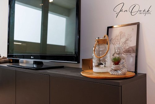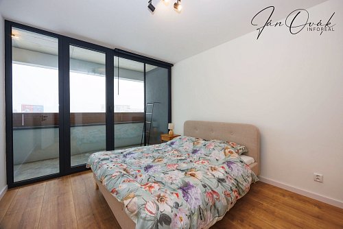 Spálňa vybavená veľkým šatníkom na mieru, posteľ s matracmi. Byt je ďalej vybavený sedačkou, Smart TV, práčka, kuchynské vybavenie(panvice, hrnce, riady, príbor).