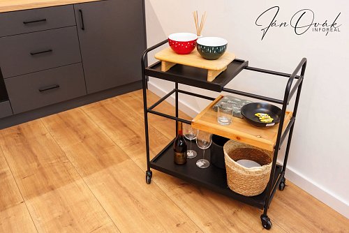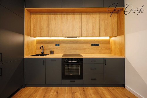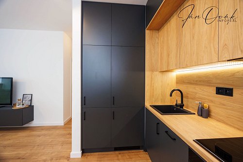 Byt bol dokončený, zariadený do vysokého štandardu, vhodný pre náročného klienta a nebol ešte používaný. Kuchyňa je vyrobená na mieru so vstavanými spotrebičmi: indukčná varná doska, elektrická rúra, umývačka riadu, chladnička s mrazničkou.