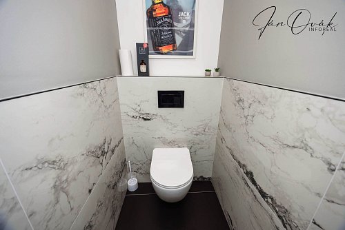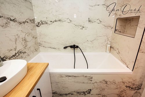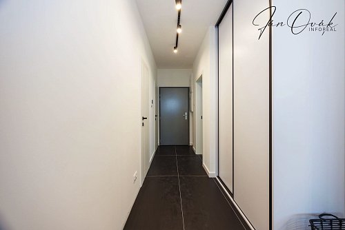 Kvalitu a dizajn dotvára dizajnová kúpeľňa. Na chodbe sa nachádza vstavaná skriňa pre dostatok úložného priestoru.